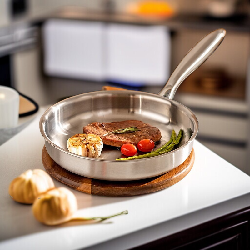 ● Featuring a thickened base, the pan resists warping and retains heat longer, making it ideal for frying, sautéing, and simmering on induction cooktops.